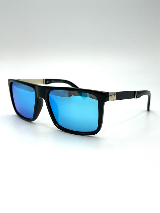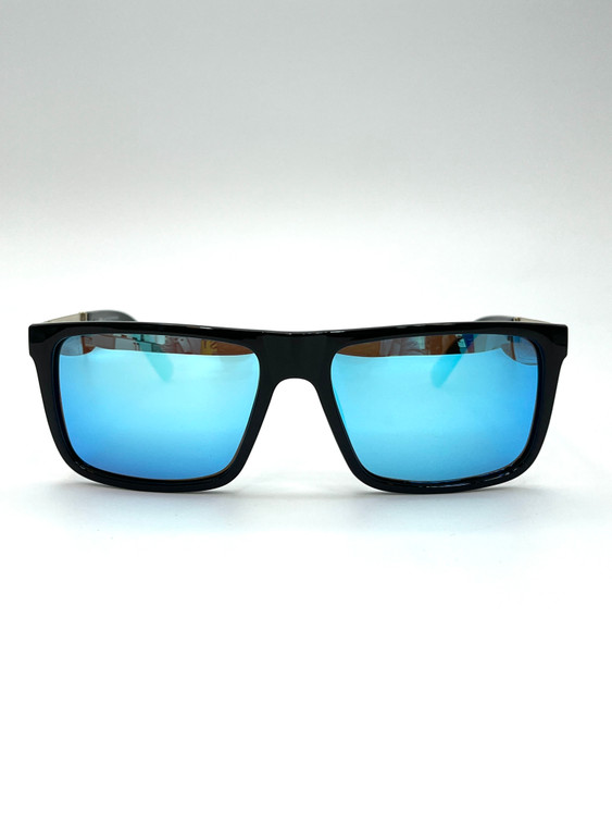 فریم مشکی براق عدسی ها رفلکس آبی دارد.